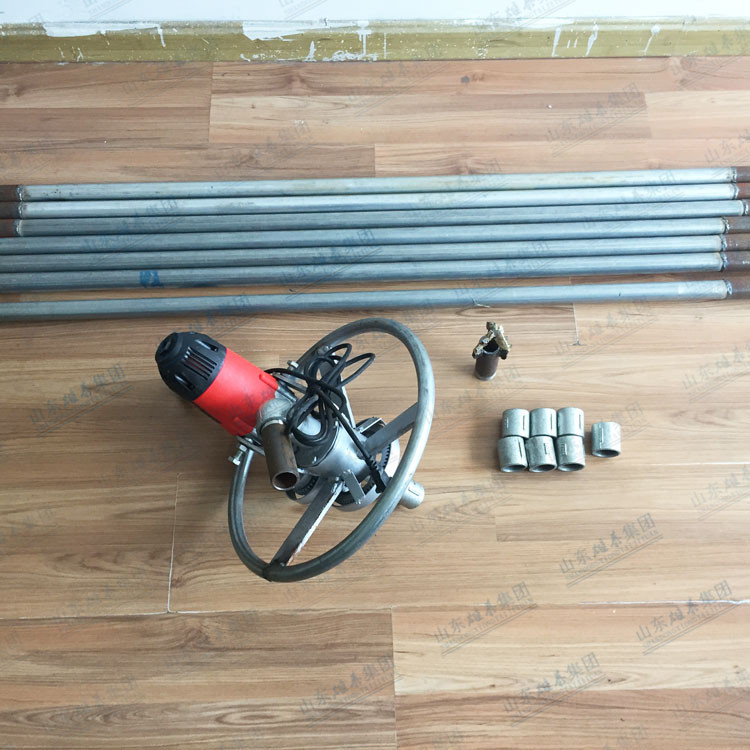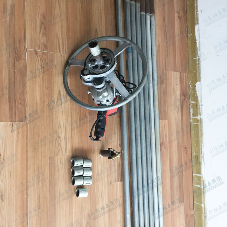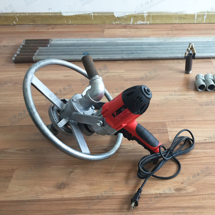 本款打井機采用了多齒輪設計,雖然增加了生產成本和制造工藝,但這樣設計增加了打井機力量(就像汽車一檔比四檔有力、還便于掌握一樣的道理),打井有力,打井速度快、便于掌握。如果齒輪少了,一千瓦的電機還沒有七百多瓦的電機力量大、而且轉速高、打井時難于掌握。這款多齒輪結構鉆井機經過許多用戶多年使用,打井效果非常理想!便攜式小型民用電動打井機廣泛應用于家庭/工廠生活用水打井、農田灌溉水井、安裝水空調、工地打樁等。本公司生產的便攜式小型民用電動打井機機頭,可隨意選配鉆頭,鉆頭價格另算。也可另配鉆桿,鉆桿直徑是32mm、一根長約1.5米。